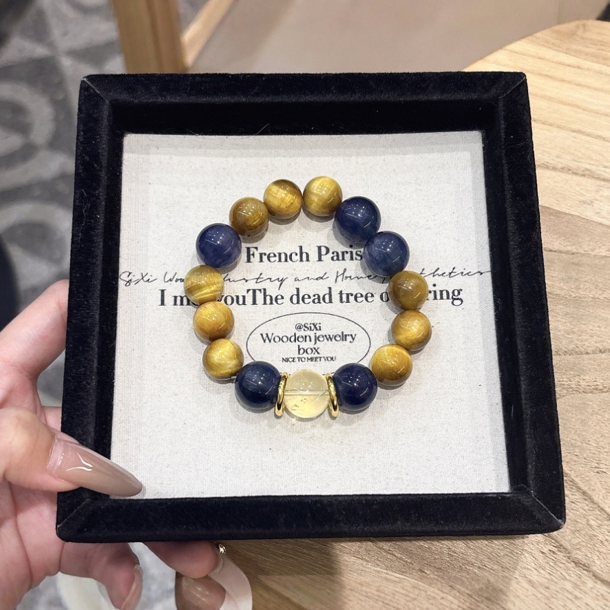 - Design: Handcrafted with a mix of calming blue Kyanite and radiant golden Tiger Eye beads.